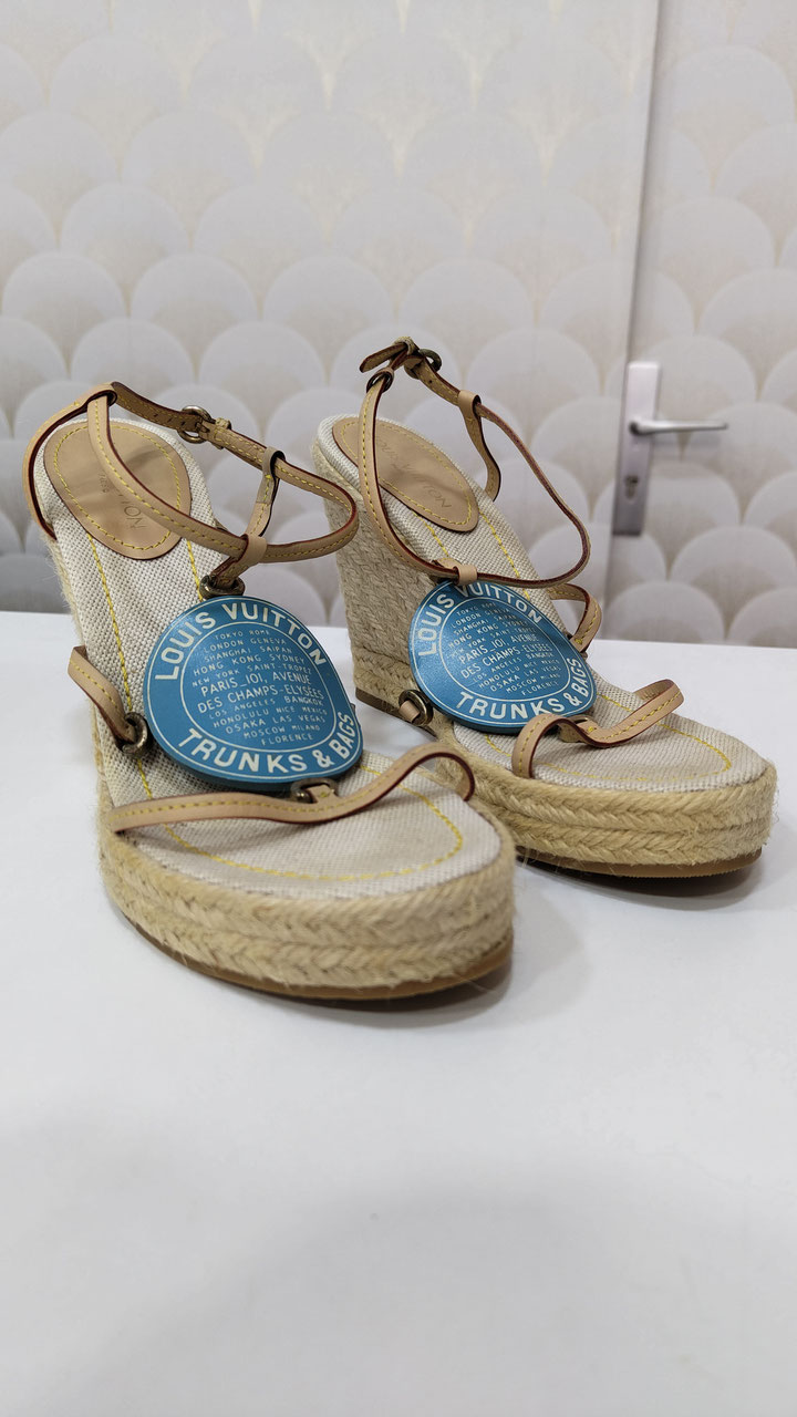 Remarques : Modèle estival iconique, parfait pour les beaux jours. Silhouette féminine et confortable grâce à la plateforme. Rare et recherché, un must-have pour les fans de Louis Vuitton.