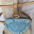 Détail emblématique : Médaillon rond bleu "Louis Vuitton Trunks & Bags" sur le dessus